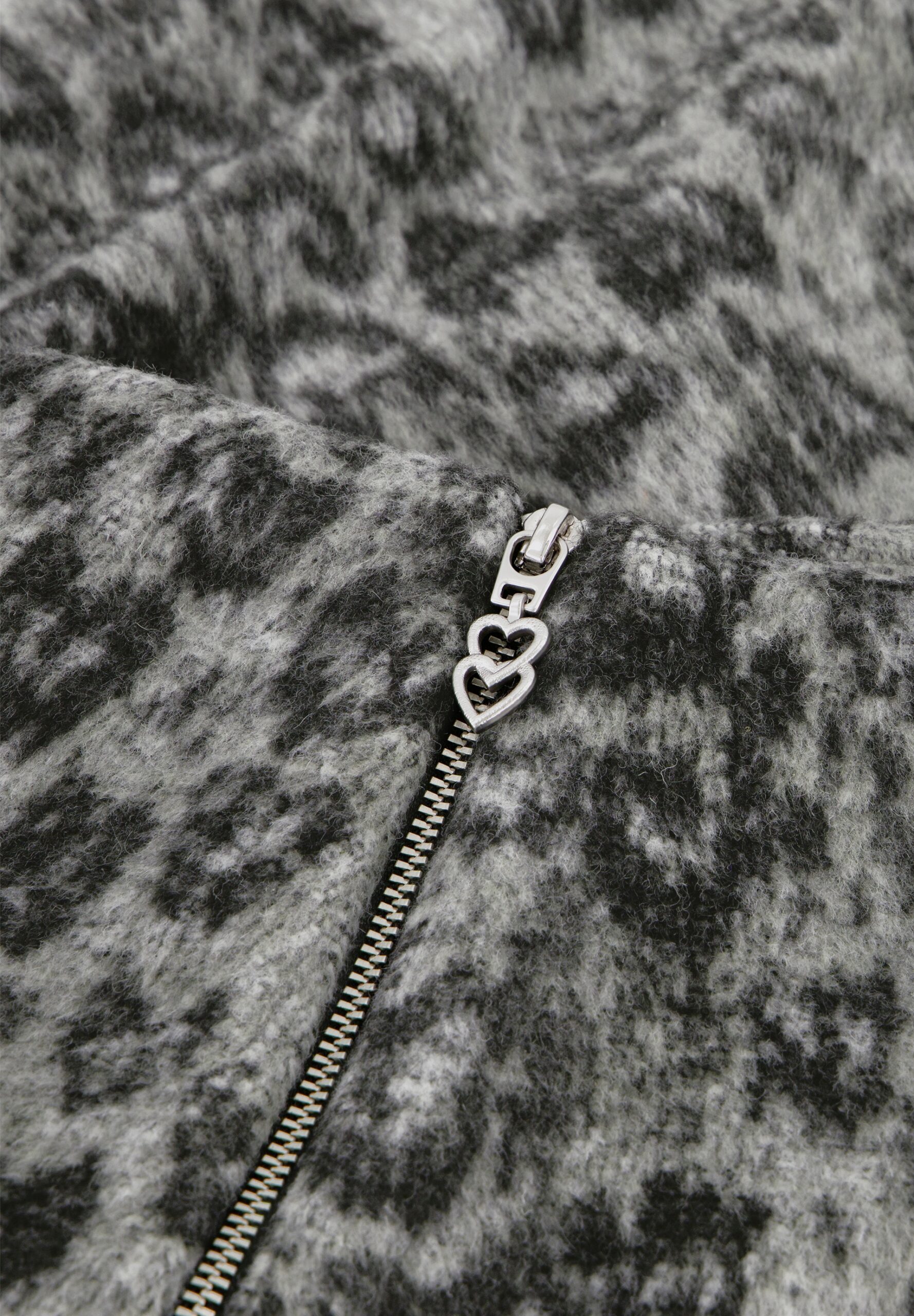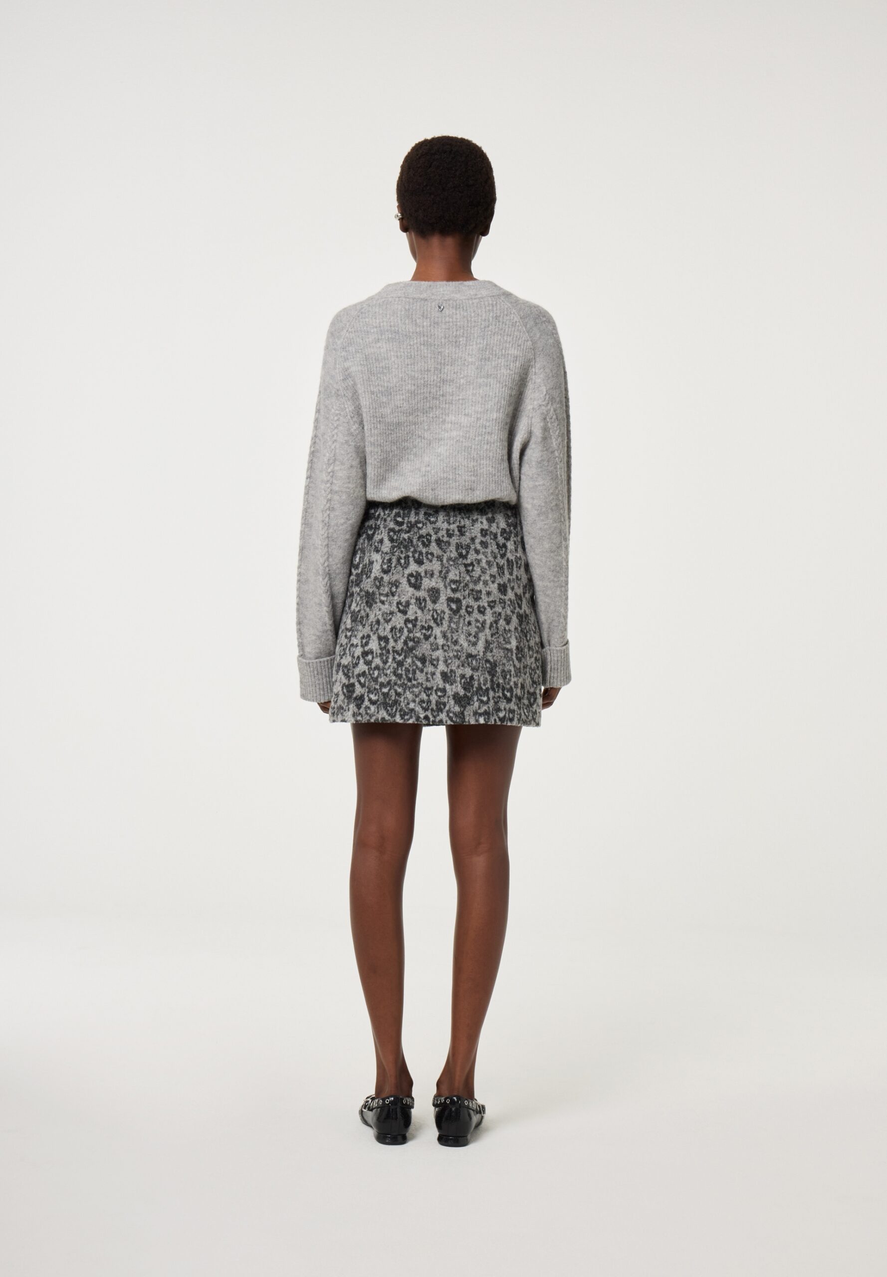 This skirt in antra and black stands out with its bold animal-inspired pattern and sleek silhouette, making it a fun yet versatile piece. Perfect for casual days, nights out, or adding a statement touch to your everyday wardrobe.