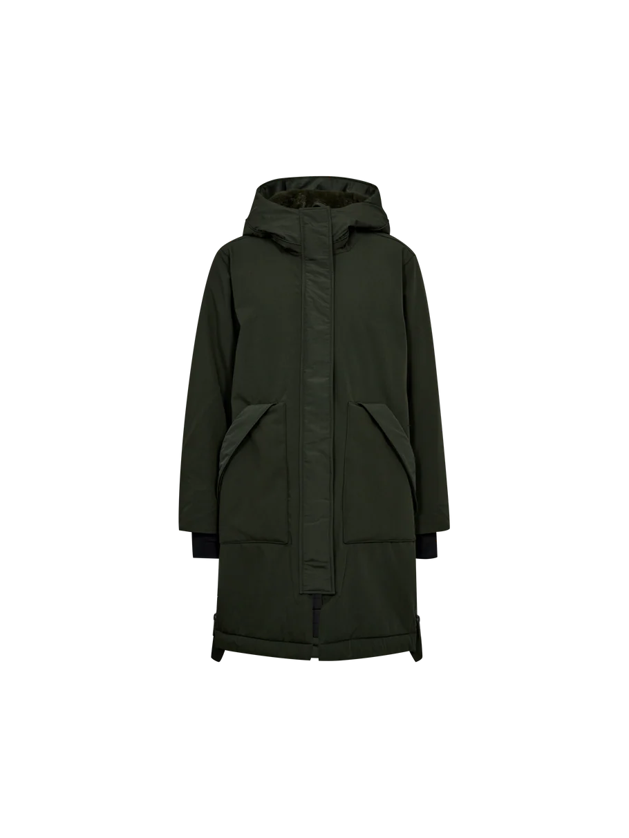 Wrap yourself in warmth and style with this long, cosy coat, featuring a practical hood and a concealed front closure for a clean, modern silhouette. The elasticated waistband creates a flattering shape, while the zipper slits at the sides allow for easy movement and versatility. Insulated with ETHERMALOFT®, an advanced heat fibre technology that retains warmth by absorbing and converting energy like sunlight, this coat is the perfect companion for colder days.