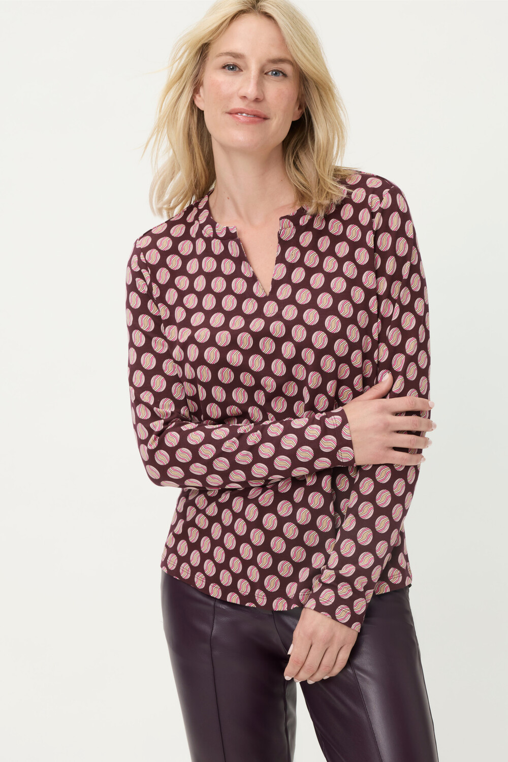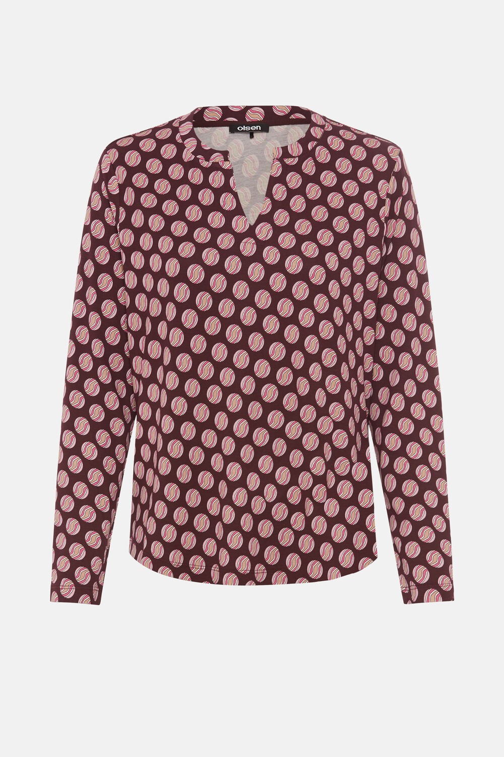 A feminine classic with a modern twist: This long-sleeved tunic-neck top features a stylish all-over design that instantly elevates any look. The soft, stretchy viscose fabric gently hugs the skin and ensures exceptional comfort—ideal for stylish everyday outfits or sophisticated casual looks. Bonus: This style contains LENZING™ ECOVERO™ viscose, which is sourced from controlled wood sources. LENZING™ and ECOVERO™ are trademarks of Lenzing AG. Length approx. 62 cm.