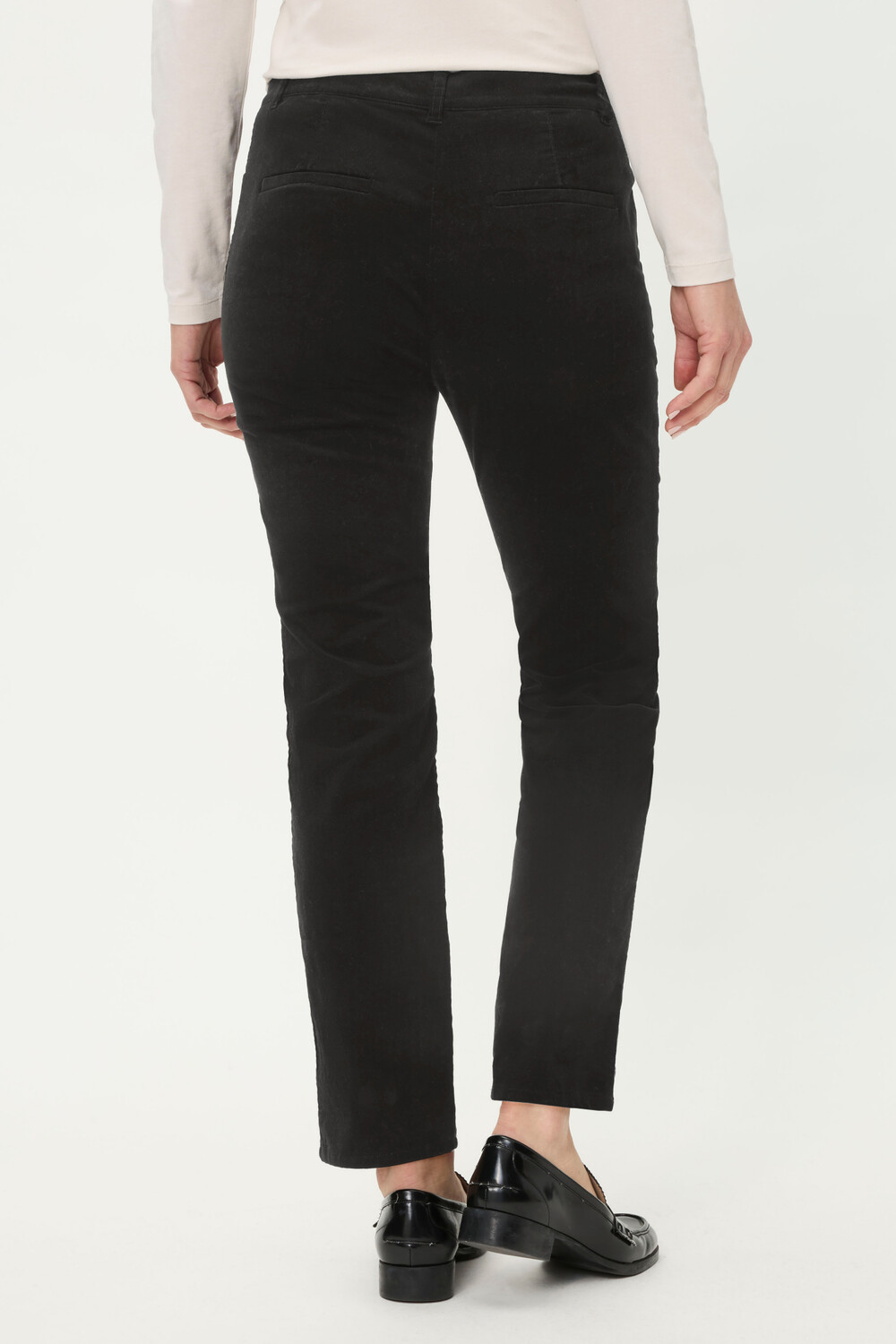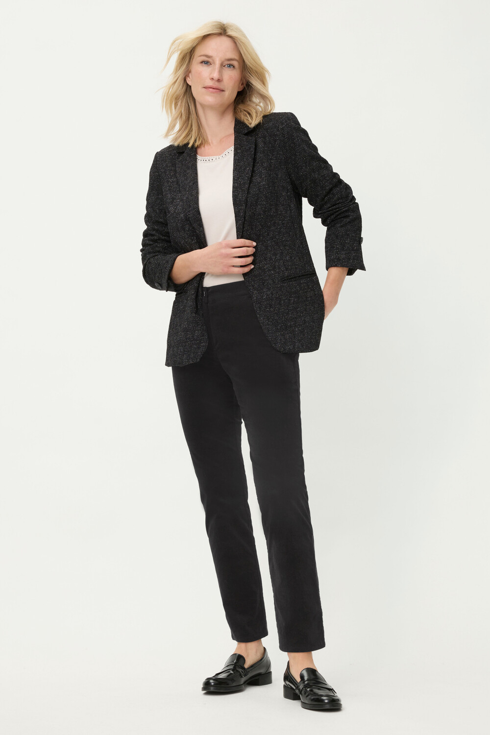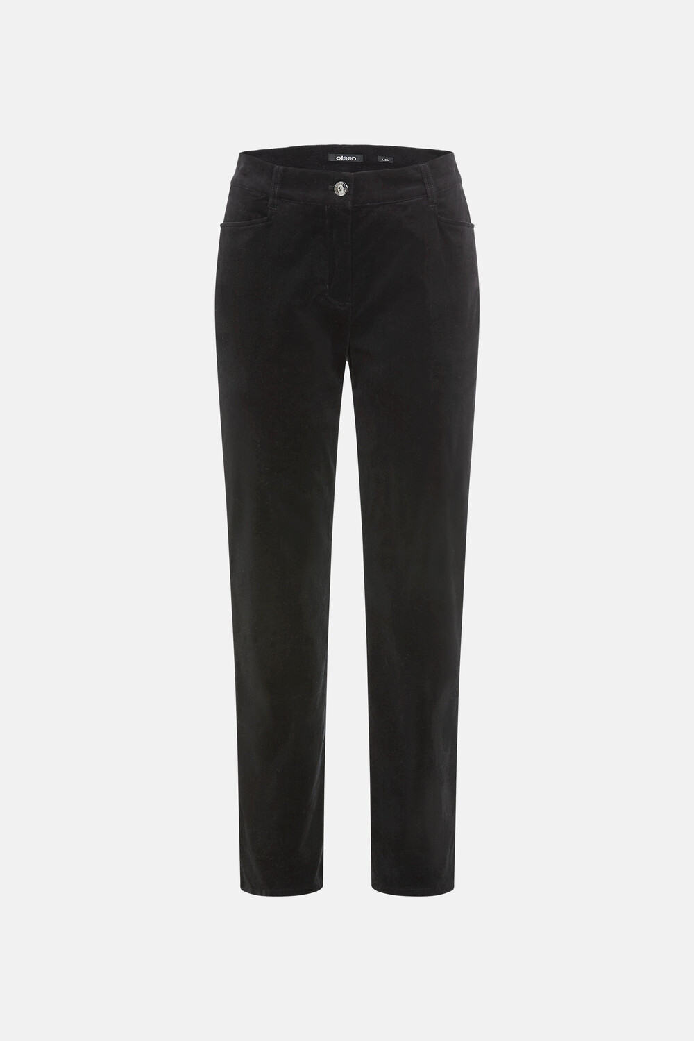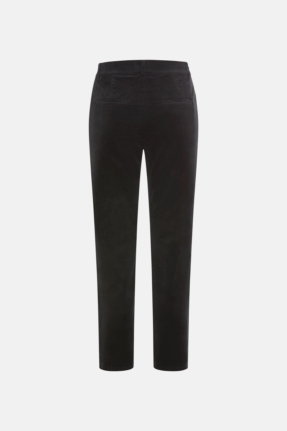 A stylish companion for warm days: These cropped velvet trousers combine a straight leg with an elegant design. The high-quality cotton blend with stretch ensures comfortable wear and optimal freedom of movement. Thoughtful details such as the zipper with button, side pockets, and piped back pockets complete the look. Perfect for combining – whether styled casually or elegantly. Length approx. 28 inches.