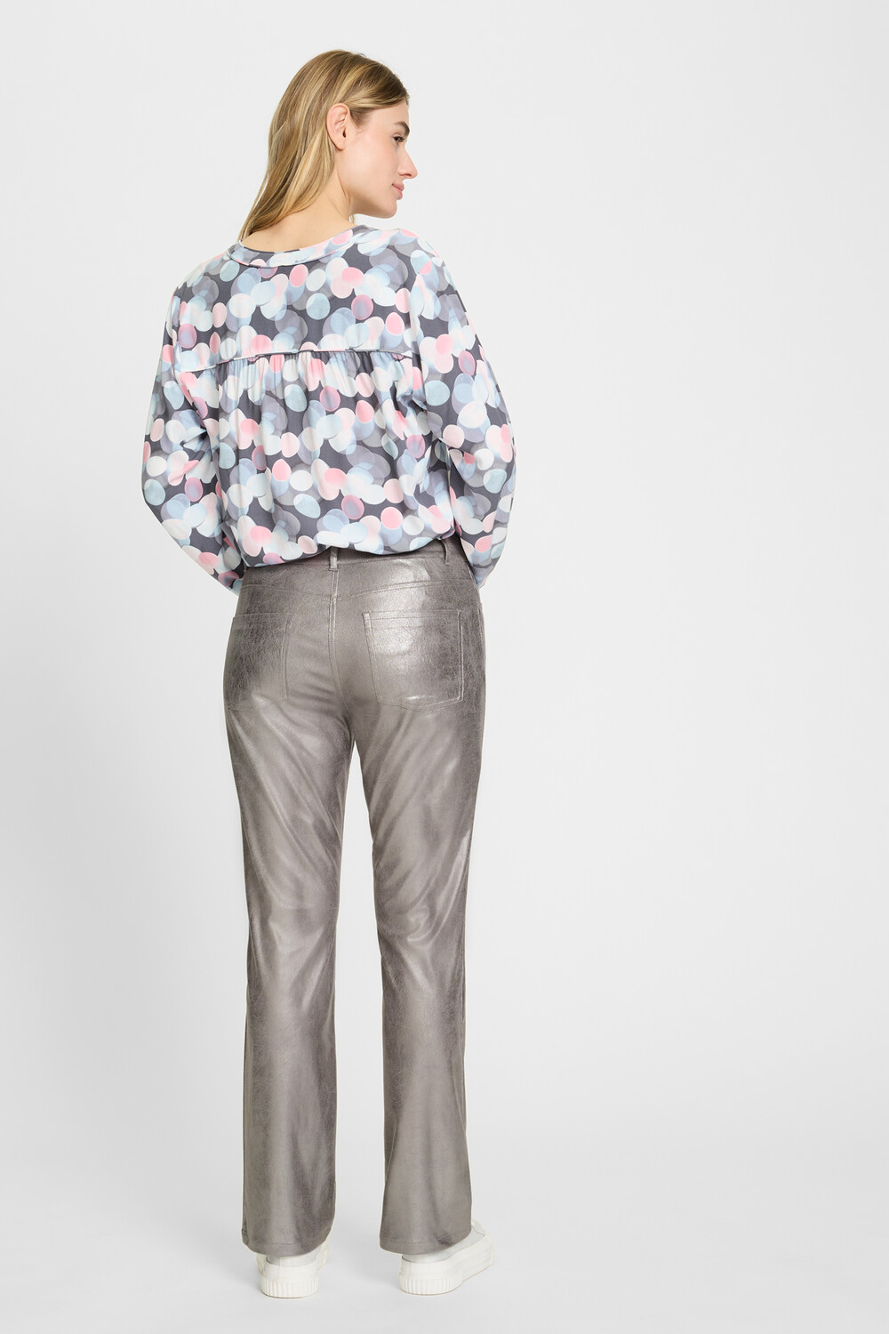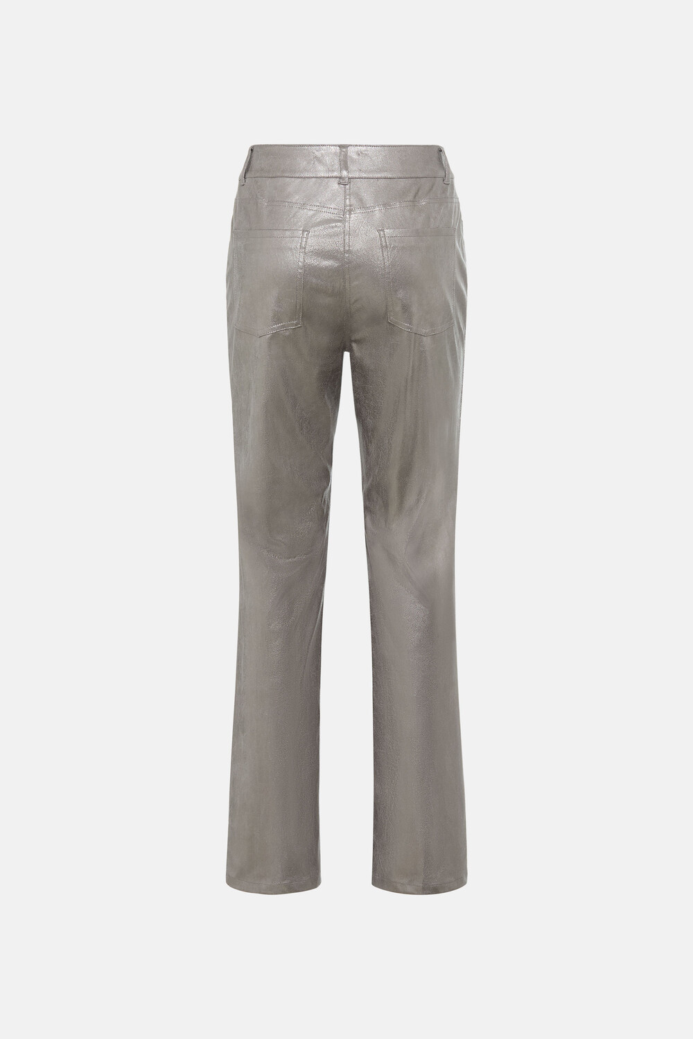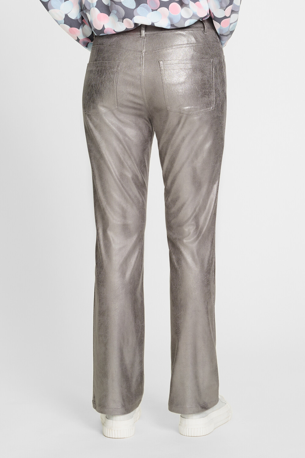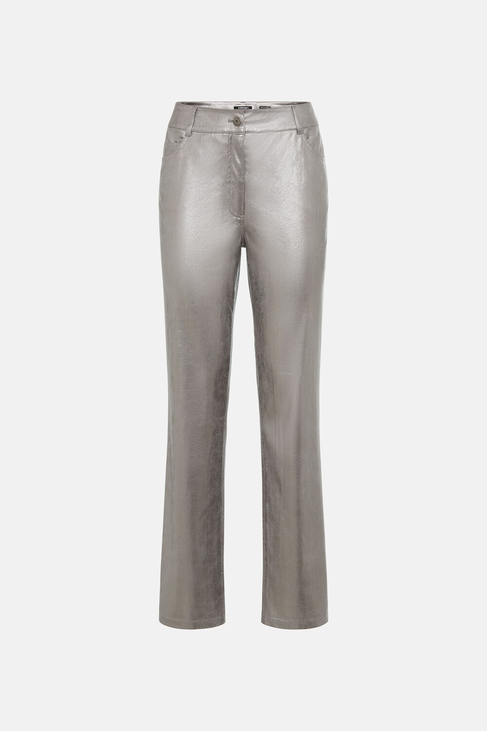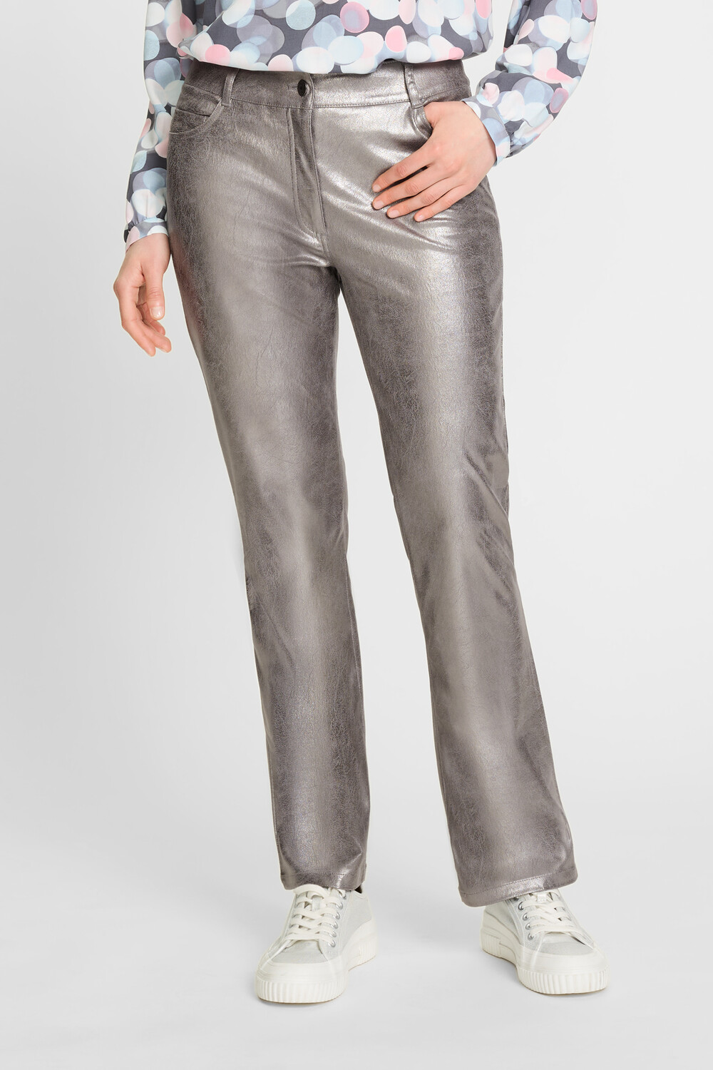 A true fashion statement: These pants impress with their metallic faux leather and classic 5-pocket design with patch back pockets. The sophisticated finish makes them the ideal choice for confident looks—whether casual or elegant. The straight leg, raised waist, and flexible material offer exceptional comfort while flattering the feminine silhouette. Particularly suitable for women with a feminine figure—fashionable, comfortable, and versatile. Length approx. 30 inches.