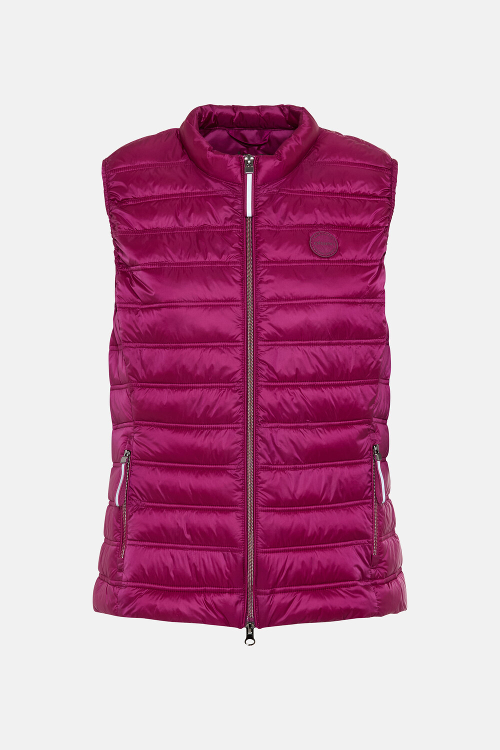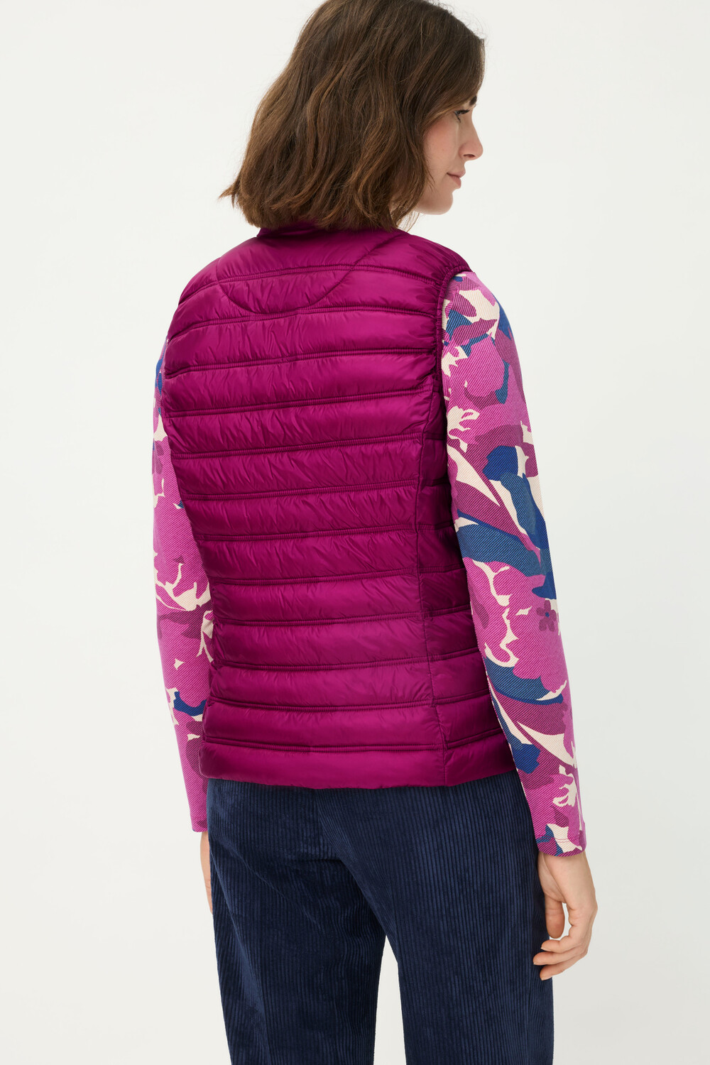 This modern quilted vest is the ideal companion for transitional seasons or as a stylish addition to any outfit. The small stand-up collar adds an elegant touch, while the full-length zipper ensures practicality and ease of use. The two pockets with zippers in the seam are practical. The sleeveless fit offers freedom of movement and is versatile. Length approx. 64 cm.