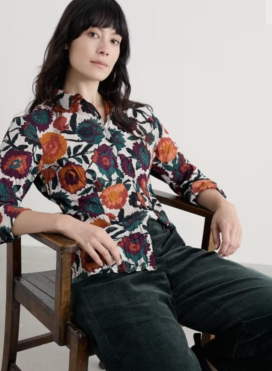Our Larissa Shirt is a year-round favourite. Made from the softest organic cotton with a casual crinkled appearance, the beauty of this shirt is that it doesn’t need ironing – just wash and twist to keep the crinkle. This semi-fitted style is easy-to-style and comfortable, with long sleeves and button loops so you can roll up the cuffs to change your look. Each season, it showcases some of our most-loved prints, created by our talented textile designers.