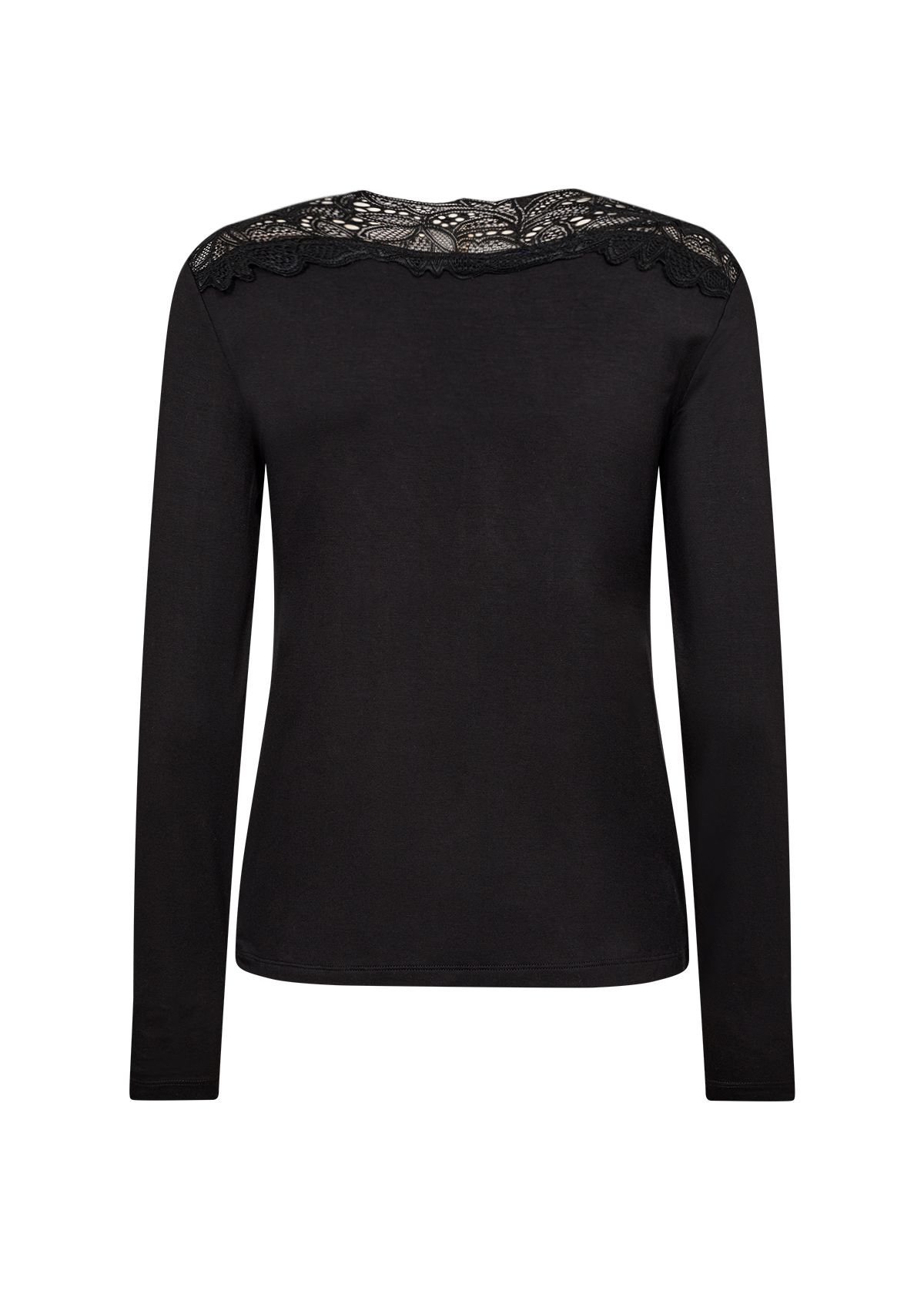 Description EN: SC-Marica 301 is a basic t-shirt made from a nice blend of lyocell and elastane. The t-shirt has a flattering v-neck with lace, long sleeves and a normal fit. Style it with a denim skirt and some boots for a nice everyday look.