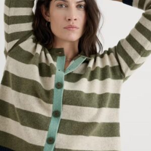 Seasalt Pinwell Striped Cardigan Made With Lambswool – Bright Shape Light Olive Mix